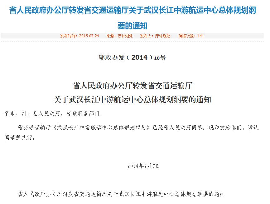 2ÔÂ7ÈÕ£¬£¬£¬£¬£¬£¬£¬£¬ºþ±±Ê¡Õþ¸®ÕýʽÅú׼ʵʩ¡¶Î人³¤½­ÖÐÓκ½ÔËÖÐÐÄ×ÜÌ广»®¸ÙÒª¡·£¨¶õÕþ°ì·¢¡²2014¡³10ºÅ£©