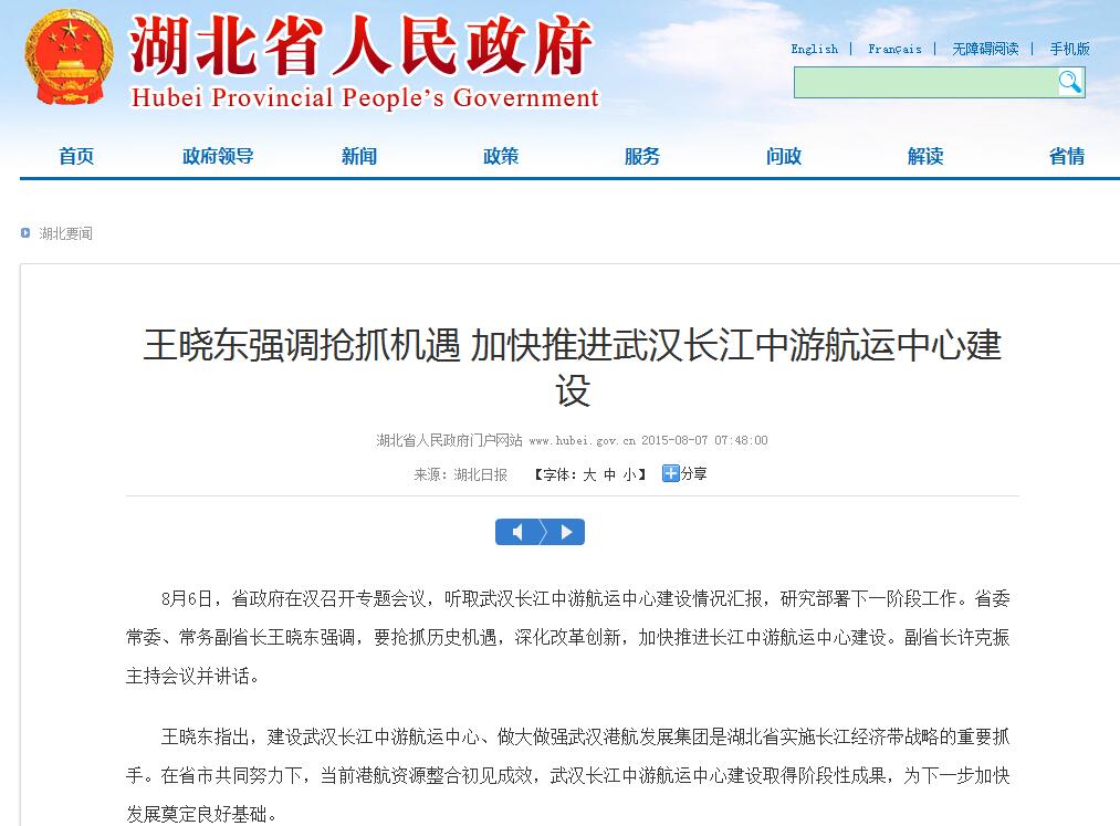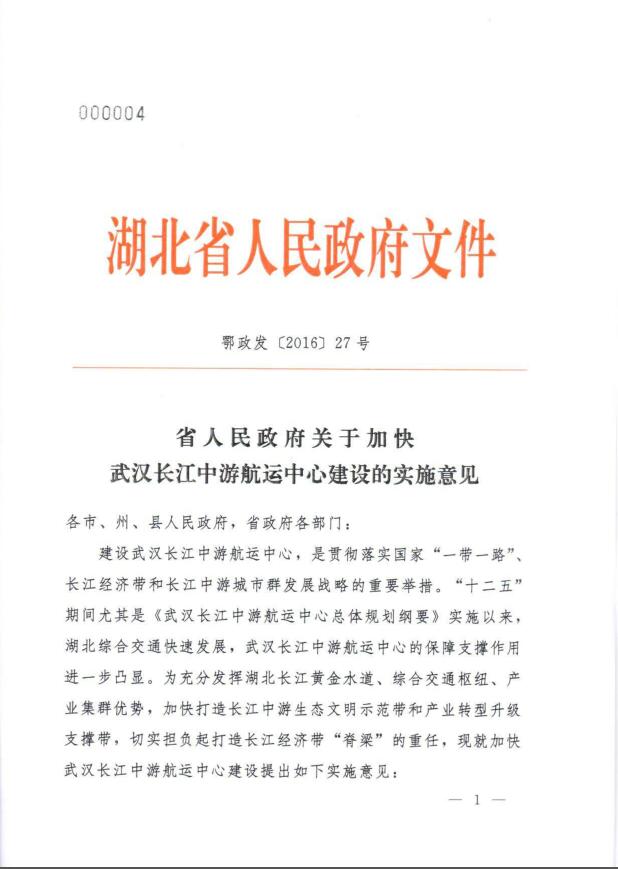 5ÔÂ20ÈÕ£¬£¬£¬£¬£¬£¬£¬£¬Ê¡ÈËÃñÕþ¸®Ó¡·¢¡¶¹ØÓÚ¹ú¼Ò³¤½­¾­¼Ã´ø·¢Õ¹Õ½ÂÔµÄʵʩÒâ¼û¡·£¨¶õÕþ·¢¡²2015¡³36ºÅ£©£¬£¬£¬£¬£¬£¬£¬£¬Ìá³ö¼Ó¿ìÎ人¡¢»ÆÊ¯¡¢¶õÖÝ¡¢»Æ¸Ô¡¢ÏÌÄþµÈÎåÊиۺ½×ÊÔ´ÕûºÏ£¬£¬£¬£¬£¬£¬£¬£¬×齨´óÐ͸ۺ½ÆóÒµ¼¯ÍÅ¡£¡£¡£¡£¡£