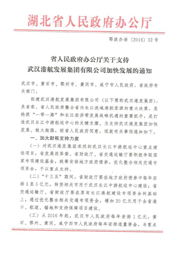 5ÔÂ28ÈÕ£¬£¬£¬£¬£¬£¬£¬£¬Ê¡ÈËÃñÕþ¸®°ì¹«Ìü³ǫ̈¡¶¹ØÓÚÖ§³ÖÎ人¸Ûº½·¢Õ¹¼¯ÍÅÓÐÏÞ¹«Ë¾¼Ó¿ì·¢Õ¹µÄ֪ͨ¡·£¨¶õÕþ°ìº¯¡²2016¡³52ºÅ£©¡£¡£¡£¡£¡£ÎļþÖ¸³ö£¬£¬£¬£¬£¬£¬£¬£¬×齨Î人¸Ûº½·¢Õ¹¼¯ÍÅÊÇʡί¡¢Ê¡Õþ¸®ÕûºÏ³¤½­Á÷Óò¸Ûº½×ÊÔ´µÄÖØ´ó¾ö²ß£¬£¬£¬£¬£¬£¬£¬£¬ÊÇÇÀ×¥¡°Ò»´øÒ»Â·¡±ºÍ³¤½­¾­¼Ã´ø·¢Õ¹Õ½ÂÔ»úÓöµÄÖØÒª×¥ÊÖ£¬£¬£¬£¬£¬£¬£¬£¬ÊÇ´òÔìÎ人³¤½­ÖÐÓκ½ÔËÖÐÐĵĹؼüÖ§³Å¡£¡£¡£¡£¡£ÒªÇóÏà¹Ø²¿ÃÅ´Ó²ÆË°¡¢ÍÁµØ¡¢°¶Ïß¡¢Í³³ïЭµ÷µÈ¶à·½Ãæ¸øÓèÖ§³Ö¡£¡£¡£¡£¡£